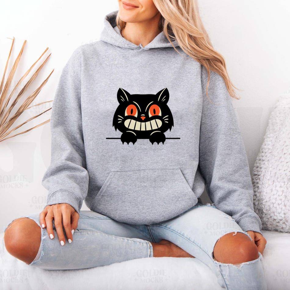 The Black Cat With Red Eyes And A Smile Design Hoodie hoodie combines comfort warmth and style for a go anywhere piece that works in any season. Soft inside and durable outside it is perfect for layering or lounging