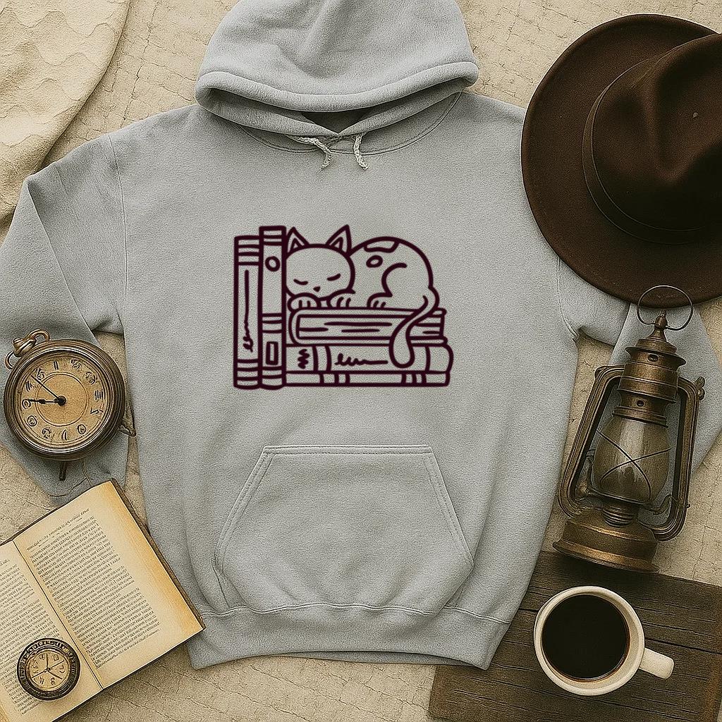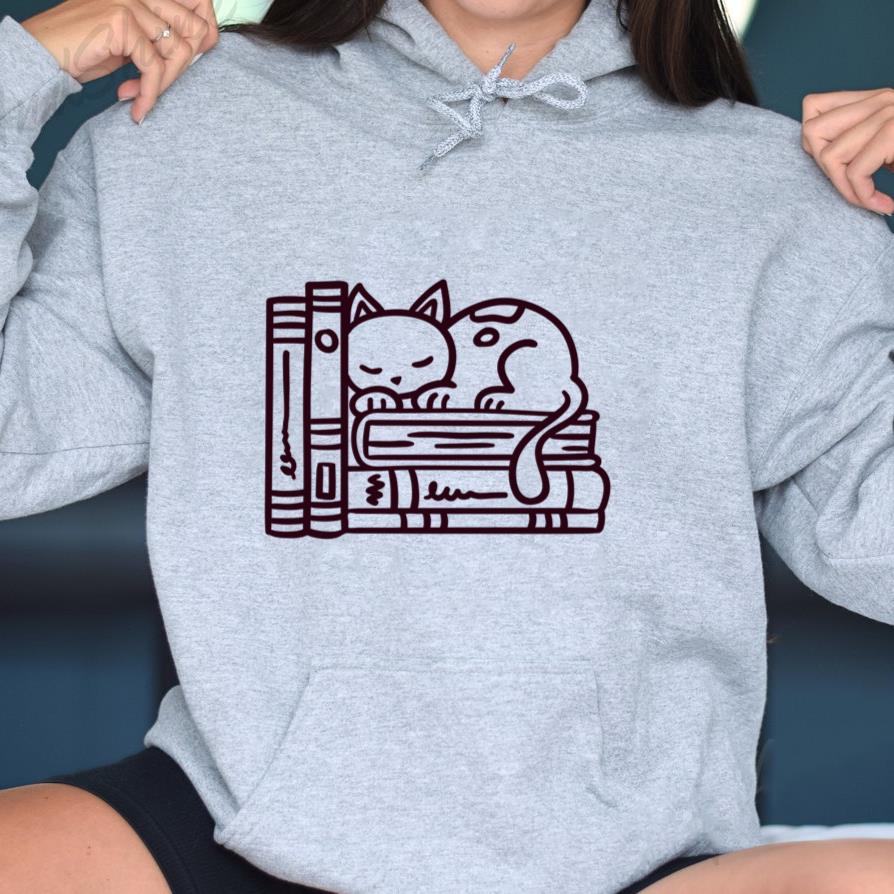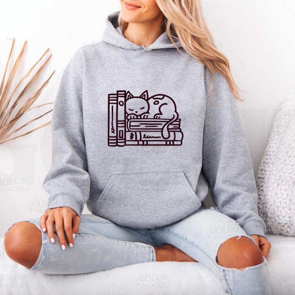 The Bookshelf Sleeping Cat Stroke Hoodie hoodie combines comfort warmth and style for a go anywhere piece that works in any season. Soft inside and durable outside it is perfect for layering or lounging