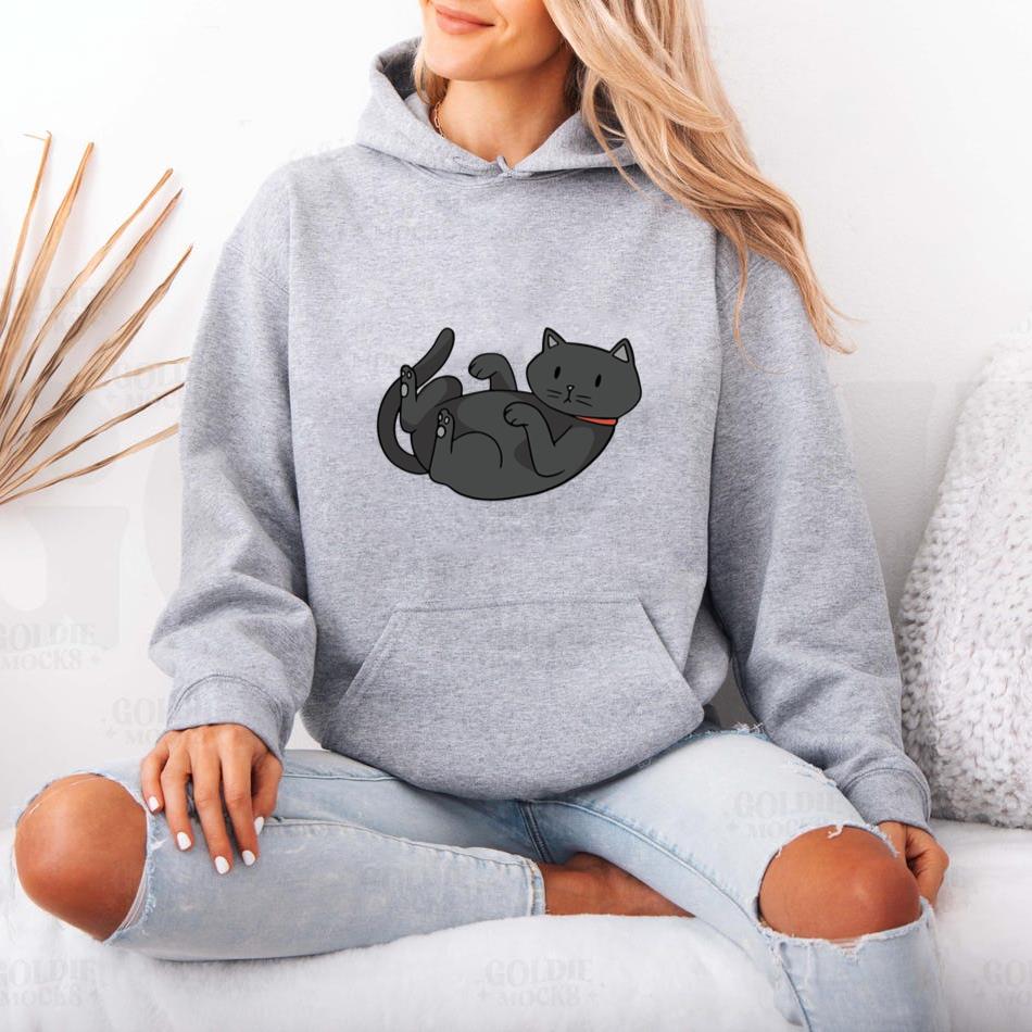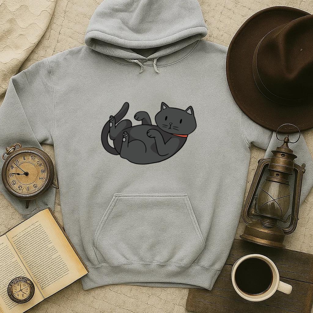 The Cute Black Cat On Its Back Hoodie hoodie combines comfort warmth and style for a go anywhere piece that works in any season. Soft inside and durable outside it is perfect for layering or lounging