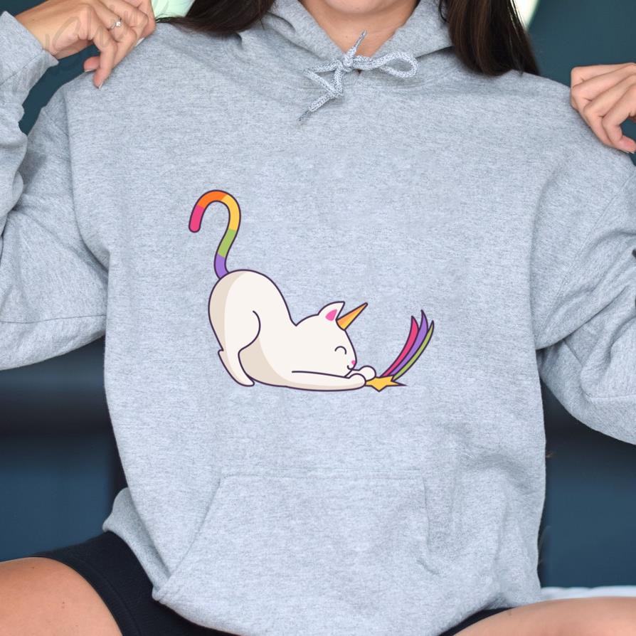 The Cute Unicorn Cat Hoodie hoodie combines comfort warmth and style for a go anywhere piece that works in any season. Soft inside and durable outside it is perfect for layering or lounging