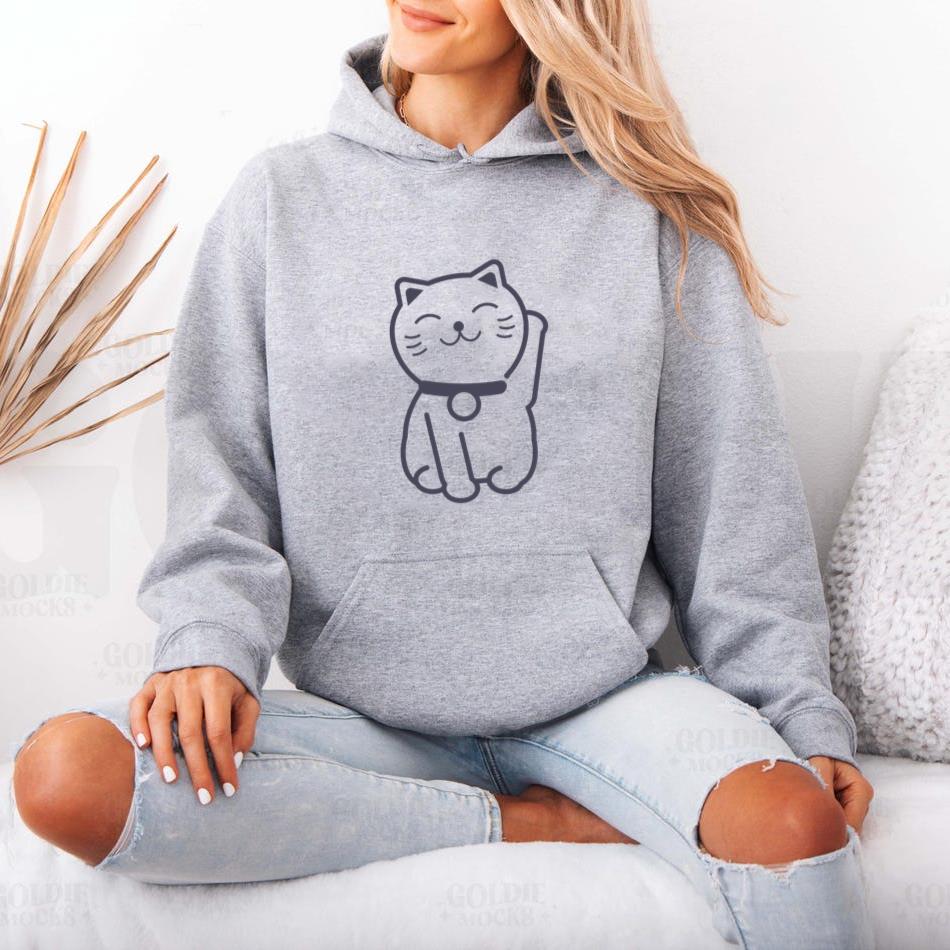 The Maneki Neko Cat Hoodie hoodie combines comfort warmth and style for a go anywhere piece that works in any season. Soft inside and durable outside it is perfect for layering or lounging