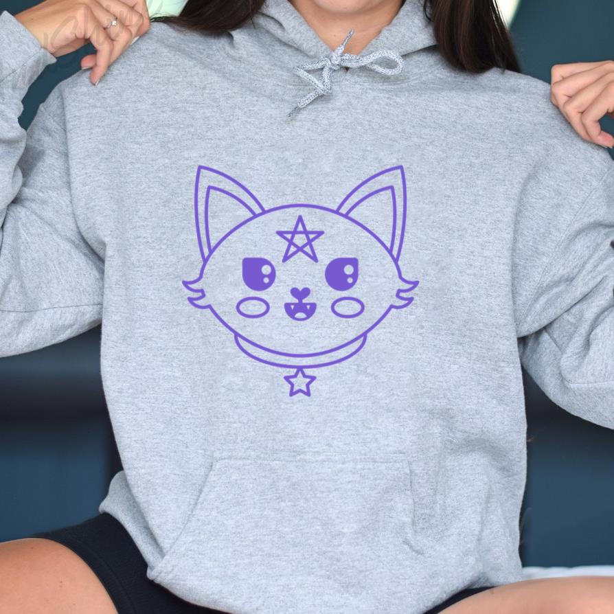 The Purple Cat With A Star On Its Head Hoodie hoodie combines comfort warmth and style for a go anywhere piece that works in any season. Soft inside and durable outside it is perfect for layering or lounging