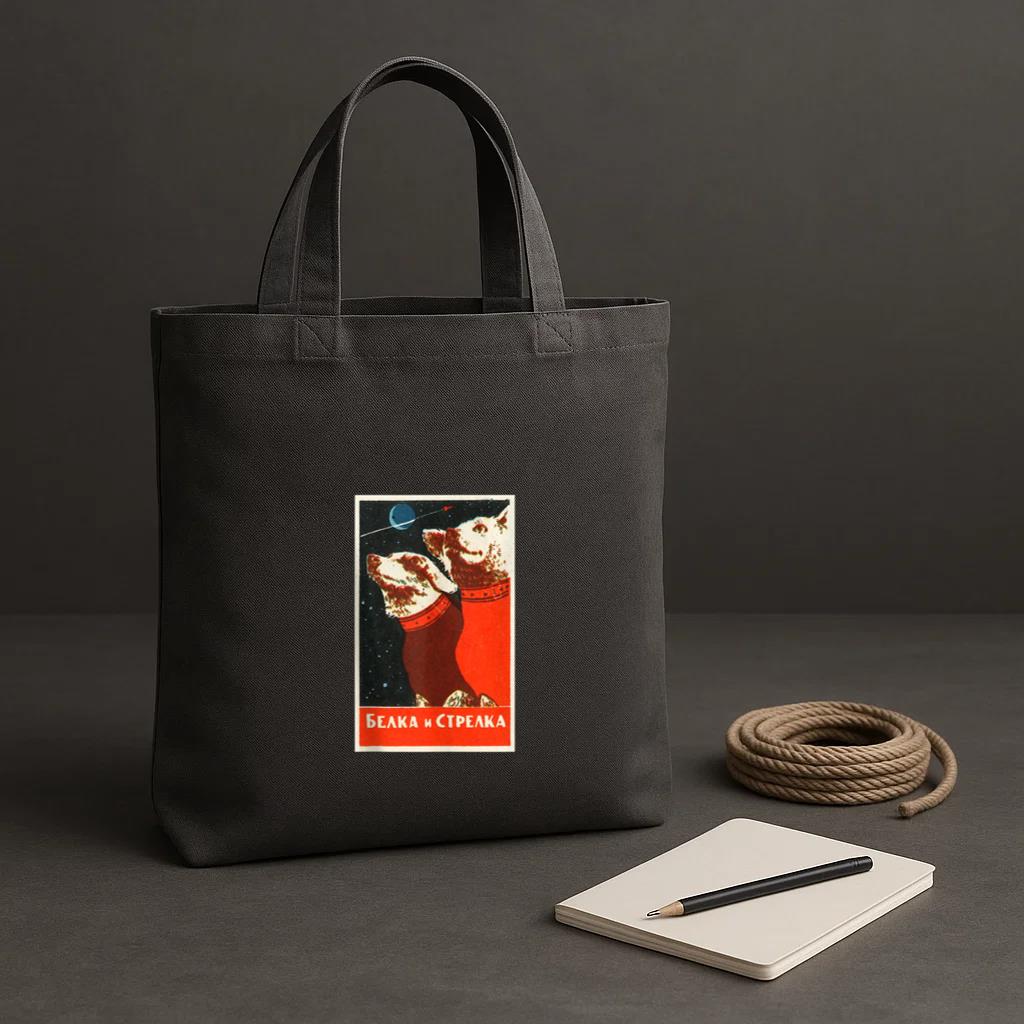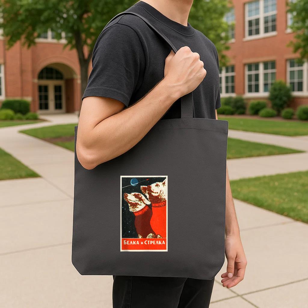 Chic, durable, and reusable, this Soviet Space Dog Propaganda Tote Canvas Bag canvas tote bag is your daily go-to or a thoughtful gift for any occasion.