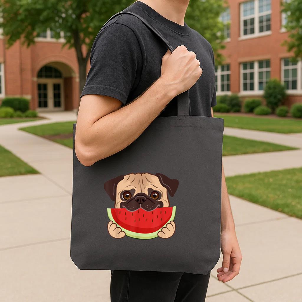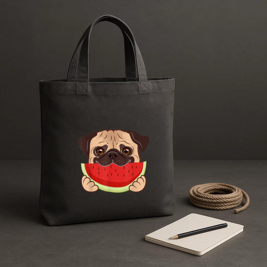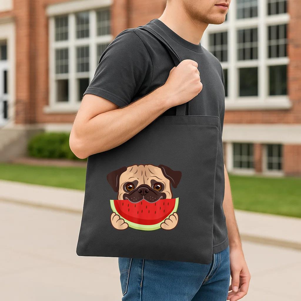 Chic, durable, and reusable, this Watermelon And Pug Dog Tote Canvas Bag canvas tote bag is your daily go-to or a thoughtful gift for any occasion.