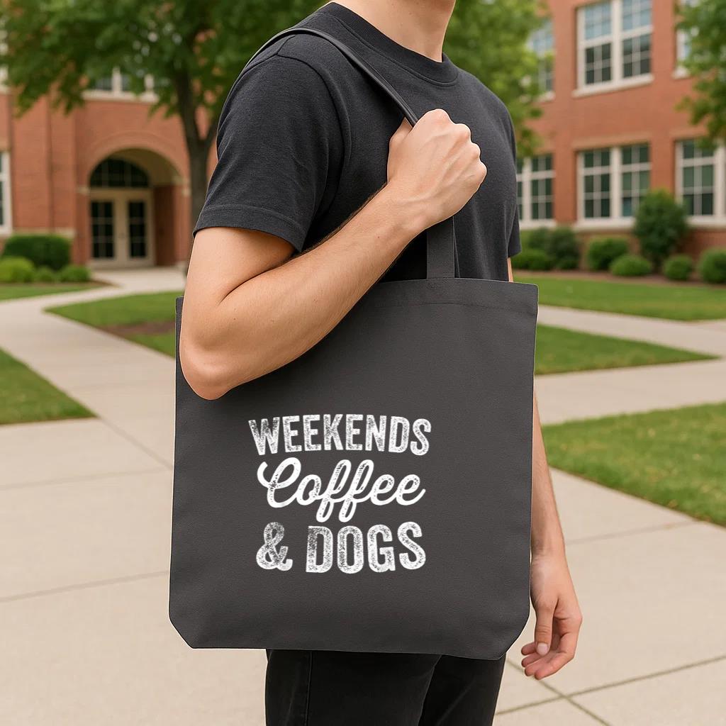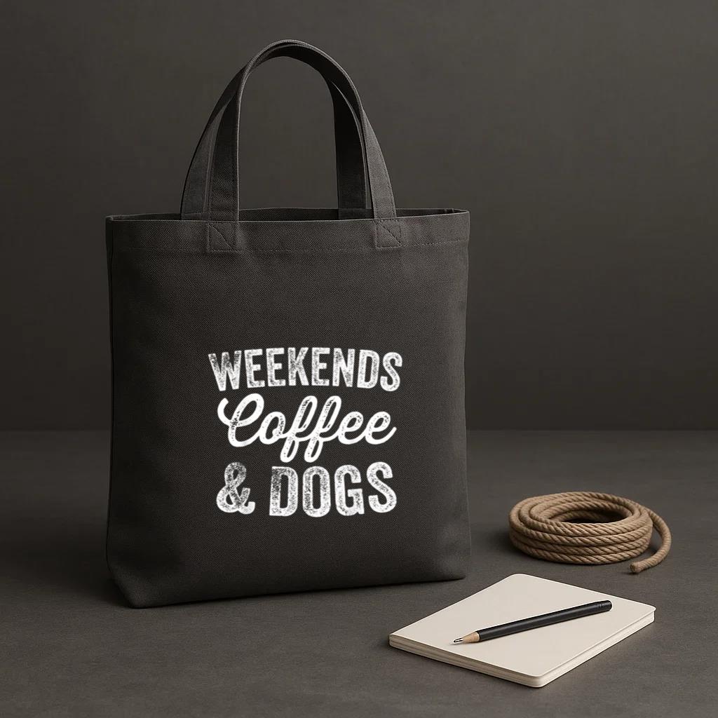 Chic, durable, and reusable, this Weekends Coffee And Dogs Tote Canvas Bag canvas tote bag is your daily go-to or a thoughtful gift for any occasion.