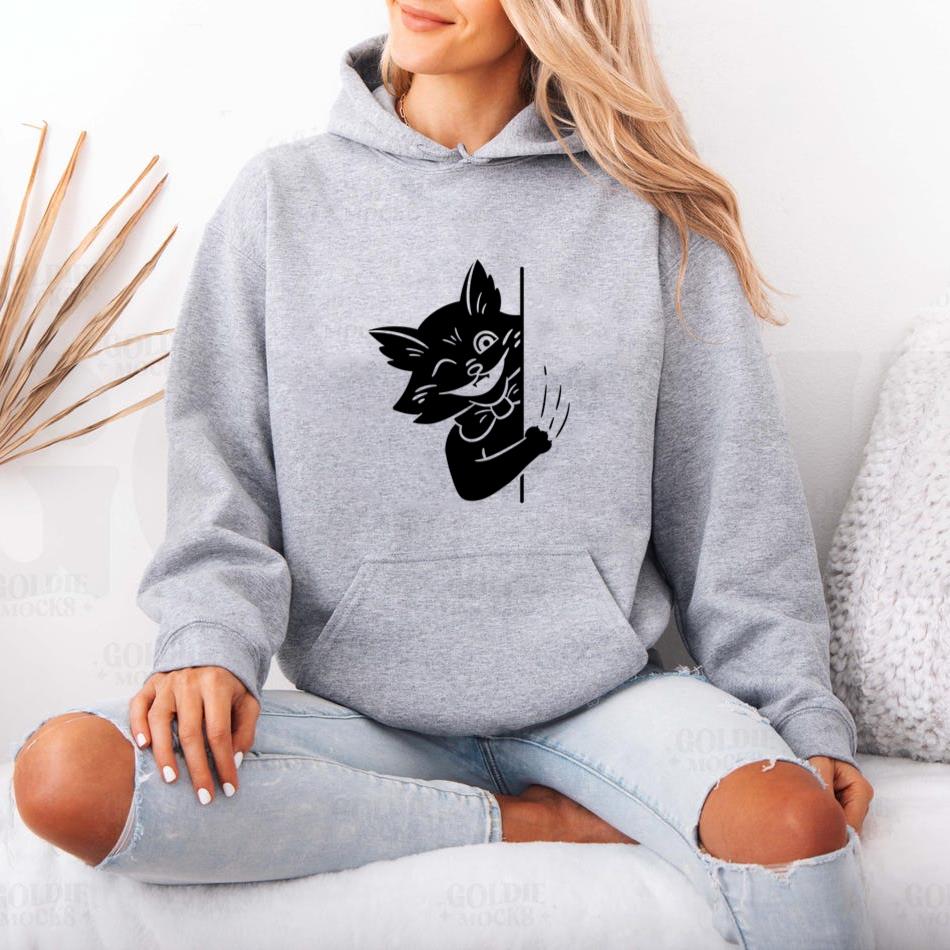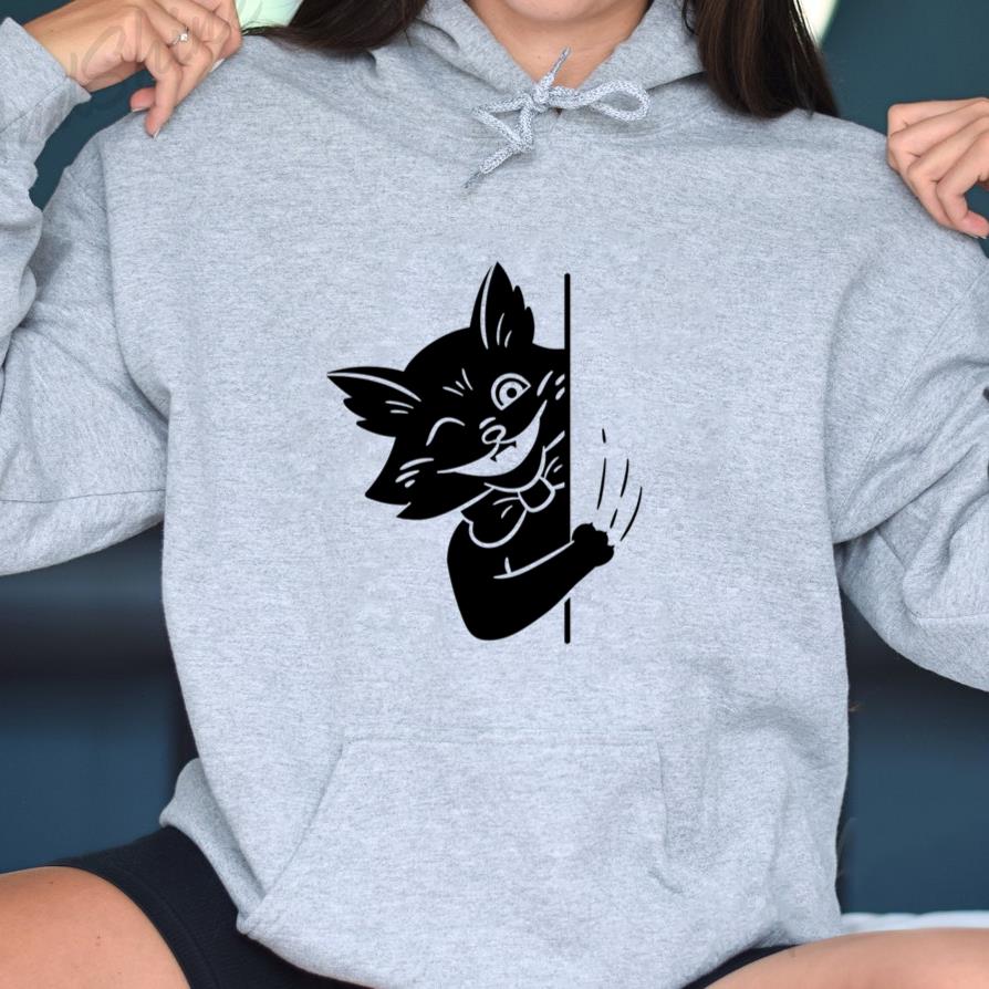 The Winking Cat With Bowtie Hoodie hoodie combines comfort warmth and style for a go anywhere piece that works in any season. Soft inside and durable outside it is perfect for layering or lounging
